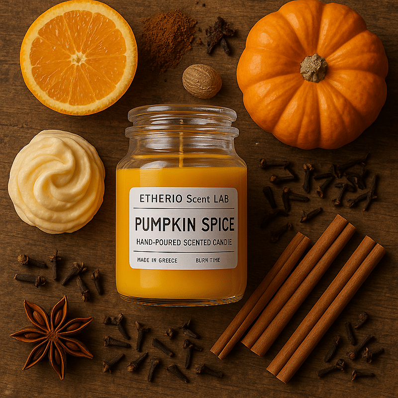 Αναπαυτικό και γλυκό με ακριβώς τη σωστή ποσότητα μπαχαρικών, το άρωμα Pumpkin Spice θα σας θυμίσει το φθινόπωρο και τις φωτιές. Οι ζεστές νότες κορυφής από πορτοκάλι, κανέλα, μοσχοκάρυδο, γαρύφαλλο και γλυκάνισο δίνουν τη θέση τους σε μεσαίες νότες μεταξένιας βουτυρόκρεμας και κολοκύθας. Μια βάση από καπνιστή χόβολη και βανίλια δίνει σε αυτό το κλασικό φθινοπωρινό άρωμα μια ζεστή πινελιά.