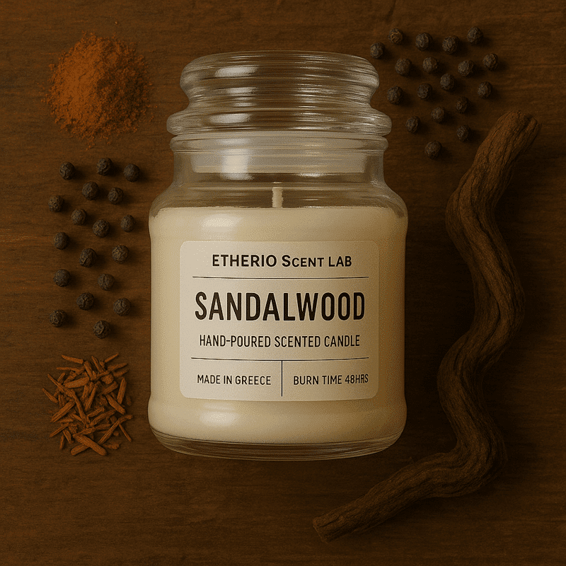Χρησιμοποιούμε κερί parasoy για εξαιρετική μυρωδιά. Τα κεριά μας αναμιγνύονται με τα καλύτερα λάδια & αρώματα & με χρόνο καψίματος έως και 48 ώρες. Παρουσιάζονται σε ένα απλό βάζο.