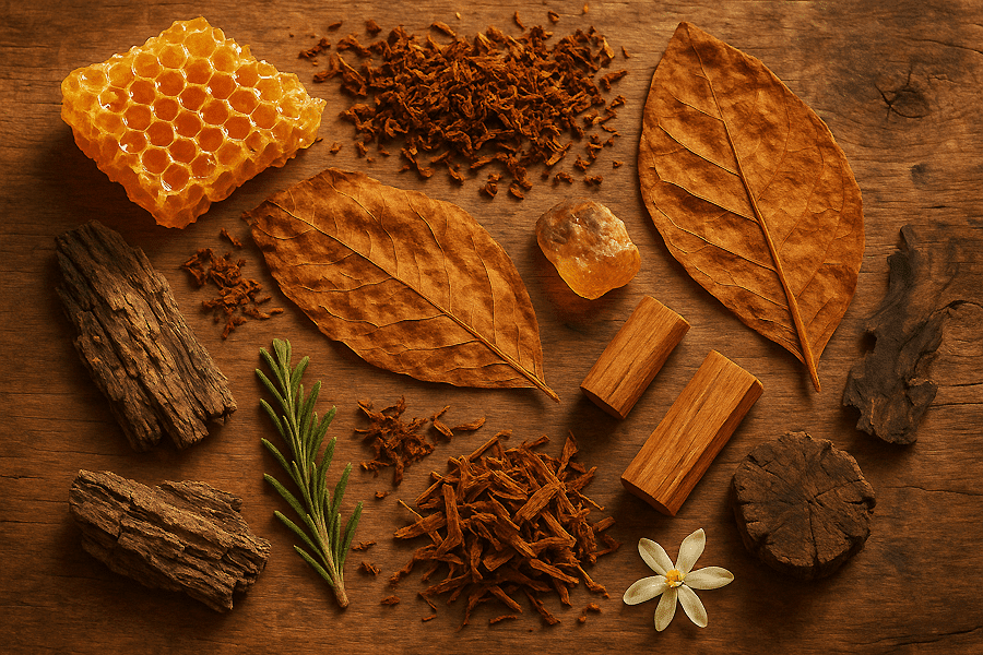 Ξυλώδες και καπνώδες άρωμα. Πλούσιο μεθυστικό άρωμα από άνθος μελιού, θρυμματισμένο καπνό, ζεστό κεχριμπάρι.