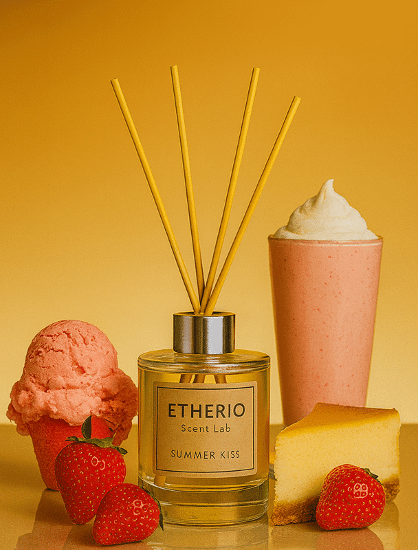 Το Summer Kiss είναι η γλυκιά ανάμνηση του καλοκαιριού, κλεισμένη μέσα σε ένα diffuser. Από την πρώτη στιγμή, η ζουμερή φράουλα ξεδιπλώνεται σαν φρεσκοκομμένο φρούτο γεμάτο φρεσκάδα και χαρά. Στην καρδιά, η βελούδινη κρέμα βανίλιας αγκαλιάζει το άρωμα με απαλότητα, θυμίζοντας αφράτη σαντιγί και παγωτό σε καλοκαιρινή βόλτα δίπλα στη θάλασσα.