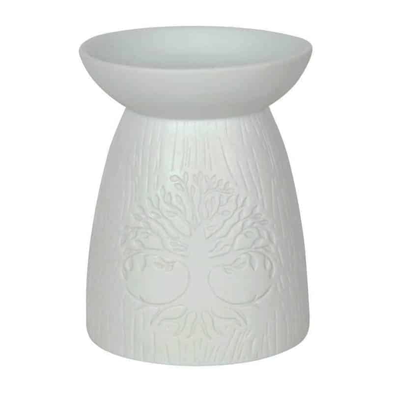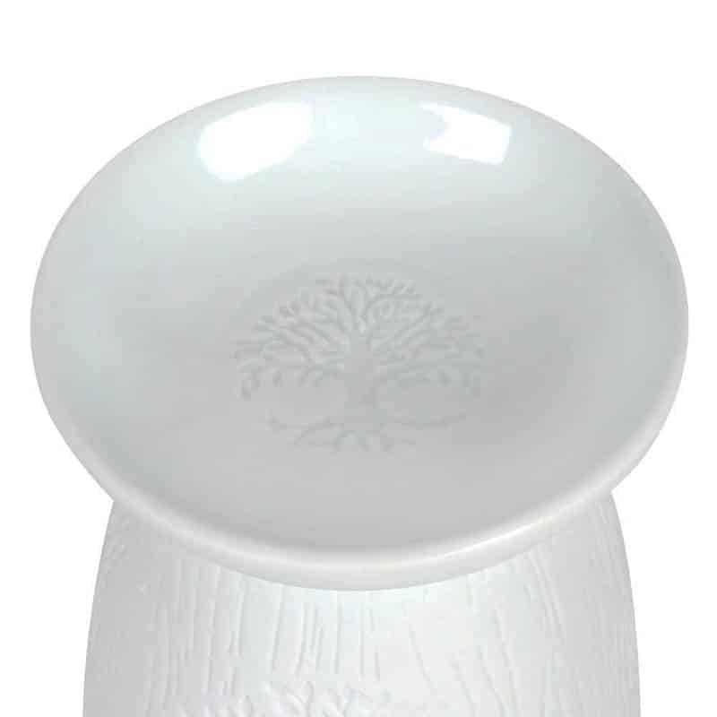 Λευκός κεραμικός καυστήρας με κομψό σχέδιο Tree of Life. Τοποθετήστε το αρωματικό λάδι ή το wax melt στο ενσωματωμένο πιάτο με ένα ρεσό μέσα για να γεμίσετε το σπίτι με ηρεμιστικό άρωμα.