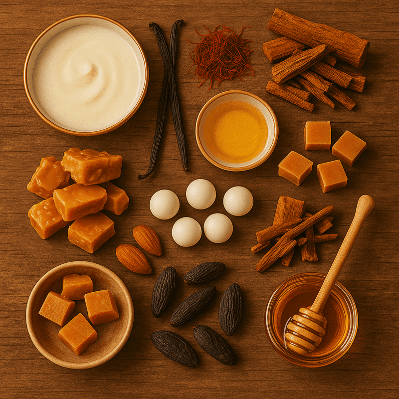 ΝΟΤΕΣ: Lactonic Notes, Vanilla, Saffron, Butter Toffee, Almond Oil, Cedarwood, Sandalwood, White Musk, Caramel, Honey, & Tonka Bean