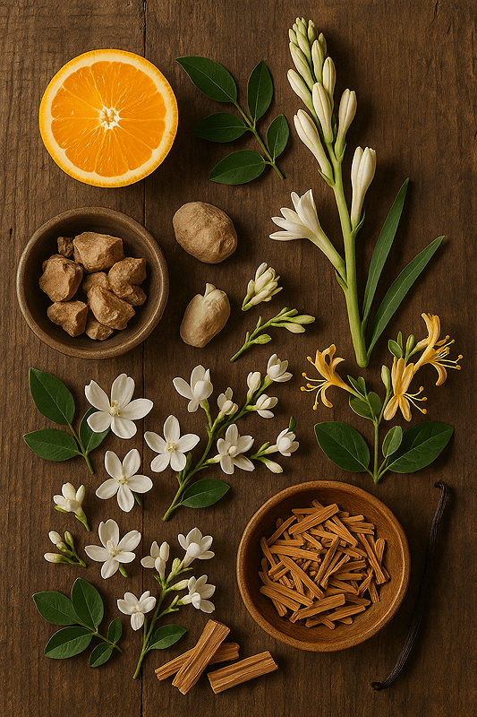- Μεσαίες νότες τουμπερόζα, γιασεμί σαμπάκ και αγιόκλημα