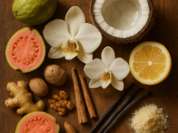 - Νότες Βάσης Βανίλια Μαδαγασκάρης, Βανίλια Μπέρμπον, απόλυτη βανίλια, Καφές, ορχιδέα βανιλια και πατσουλί.