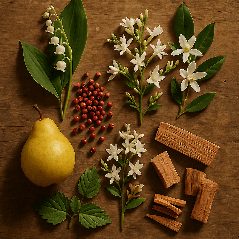 - Νότες κορυφής αχλάδι νάσι και ροζ πιπέρι