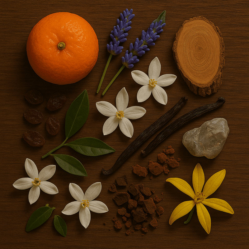 • Κορυφαίες νότες     Μανταρίνι πορτοκάλι, λεβάντα, σταφίδα και petitgrain
