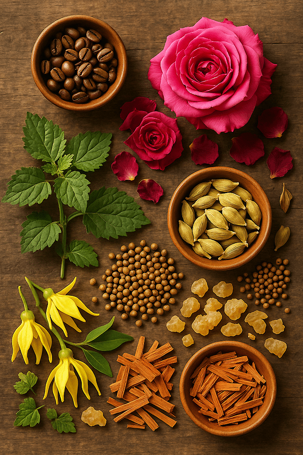 - Νότες κορυφής τριαντάφυλλο Τουρκίας και Καφές