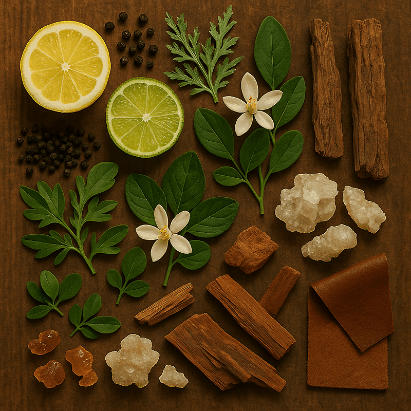 • Μεσαίες νότες       αρτεμισία, άνθη πορτοκαλιάς και φύλλο βιολέτας