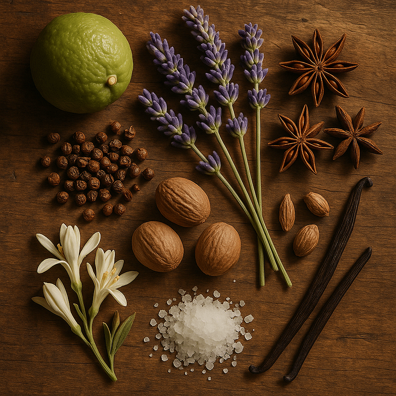 - Μεσαίες νότες Λεβάντα, πιπέρι σιτσουάν, αστεροειδής γλυκάνισος και μοσχοκάρυδο