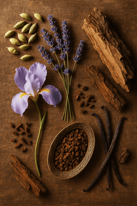 Η λεβάντα φέρνει καθαρότητα και ισορροπία, ενώ η ίριδα χαρίζει μια πουδρέ, βελούδινη κομψότητα.