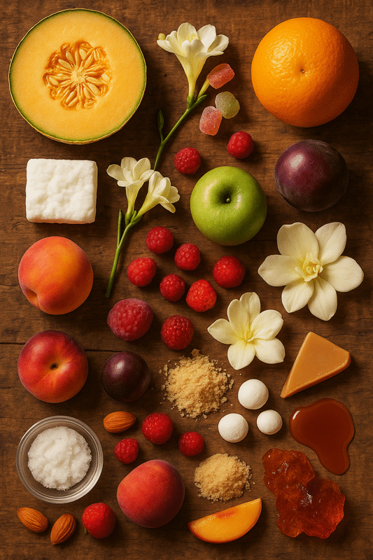 - Νότες κορυφής: Πεπόνι, πορτοκάλι, αλδεΰδες, φρέζια, tutti frutti