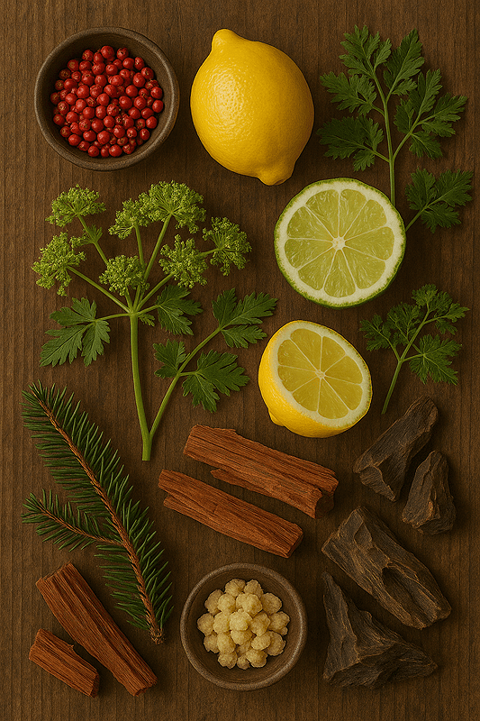 - μεσαία νότα Κέδρος, Αγγελική και γάλβανο