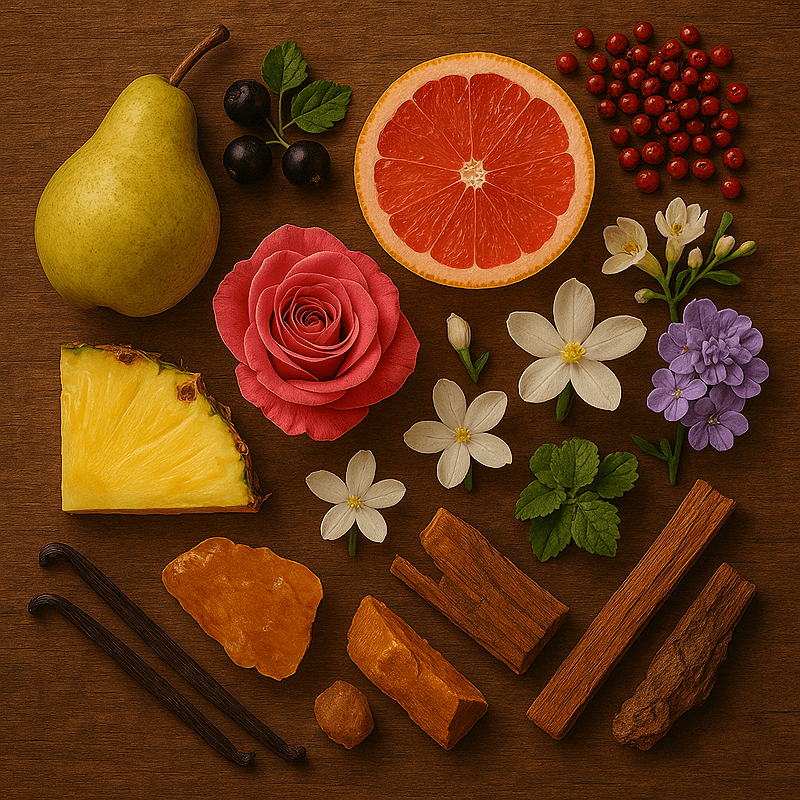 - Νότες κορυφής αχλάδι, Φραγκοστάφυλλο, ροζ πιπέρι και γκρειπ φρουτ