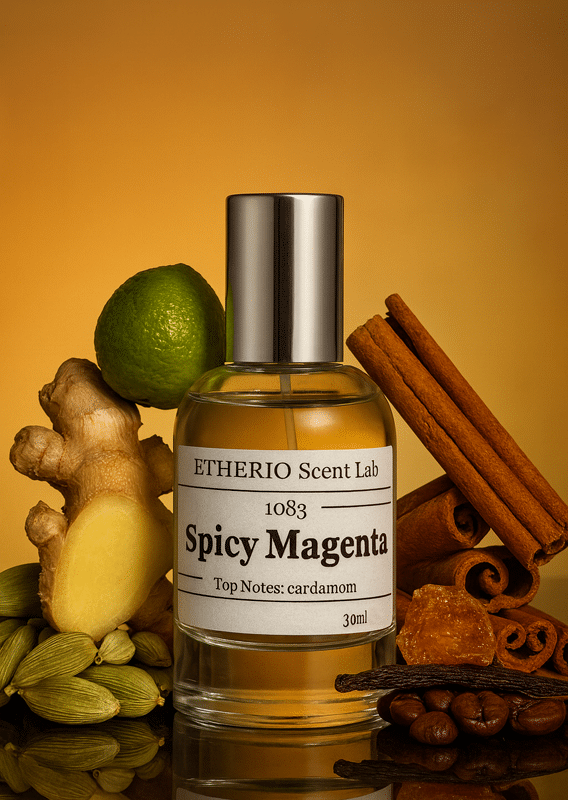 Spicy Magenta μια κεχριμπαρένια πικάντικη σύνθεση που συνδυάζει την πικάντικη καλοσύνη του κάρδαμου με τη ζεστασιά της βανίλιας και της κανέλας. Ένας υπαινιγμός καφέ προσθέτει τη θαλπωρή ενώ ο καπνός αλέθει το άρωμα με την ηχηρή του προσωπικότητα. Το μύρο και ο σπόρος τόνκα στη βάση δημιουργούν την αλληλεπίδραση μεταξύ σκούρου και γλυκού. Το τζίντζερ είναι το φωτεινό στοιχείο που χρησιμεύει ως φάρος φωτός σε μια κατά τα άλλα σκοτεινή σύνθεση. Το Spicy Magenta είναι το άρωμα που κάνει την προσωπικότητά σας να λάμψει! Tαιριάζει καλύτερα για το φθινόπωρο/χειμώνα.