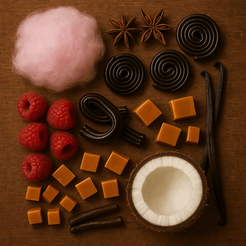 - Νότες βάσης: Καραμέλα, βανίλια, καρύδα
