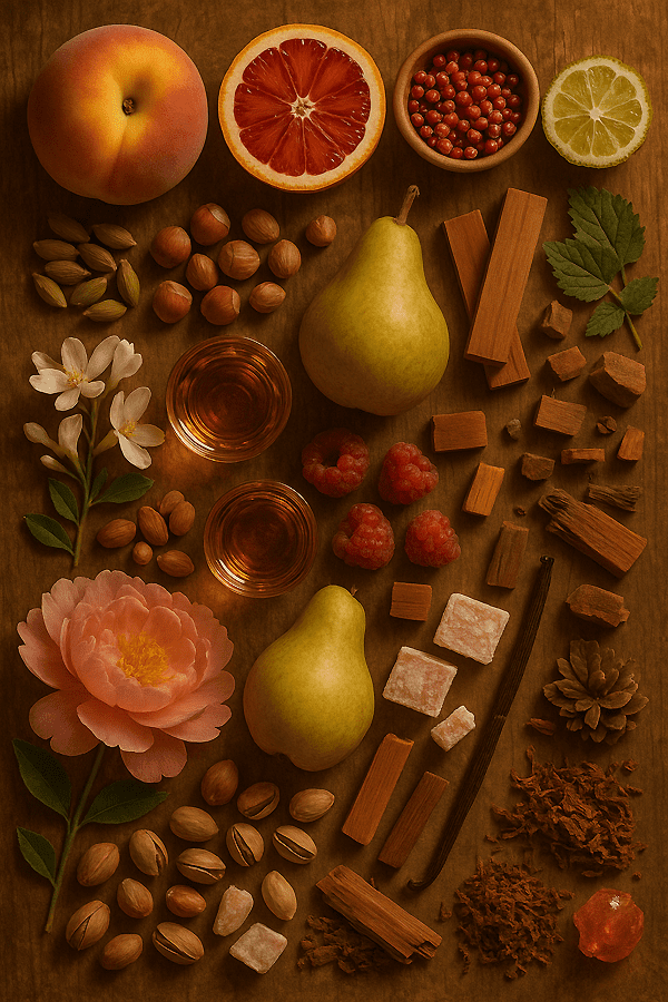 - Κορυφαίες νότες Ροδάκινο, Σανγκουίνι,Ροζ πιπέρι, Περγαμόντο, Κάρδαμο,Φουντούκι, Φιστίκι Αιγίνης