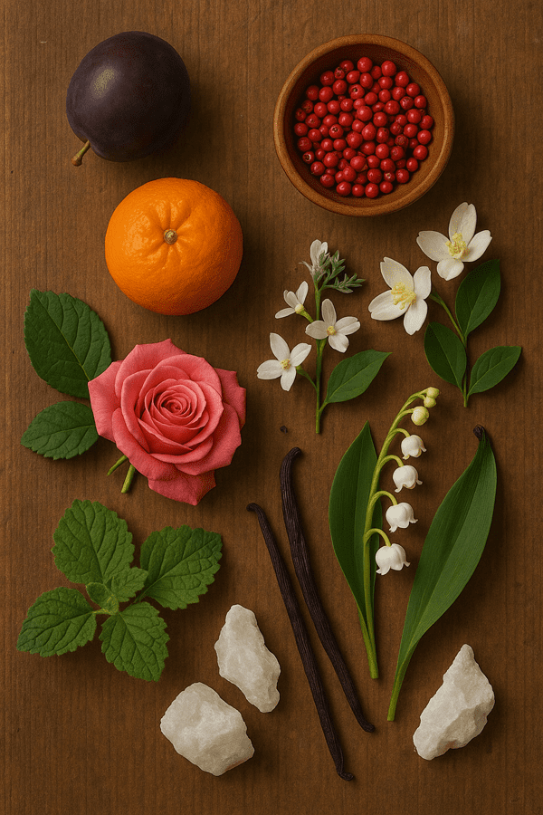 - Νότες κορυφής δαμάσκηνο, μανταρίνι Ιταλίας και ροζ πιπέρι