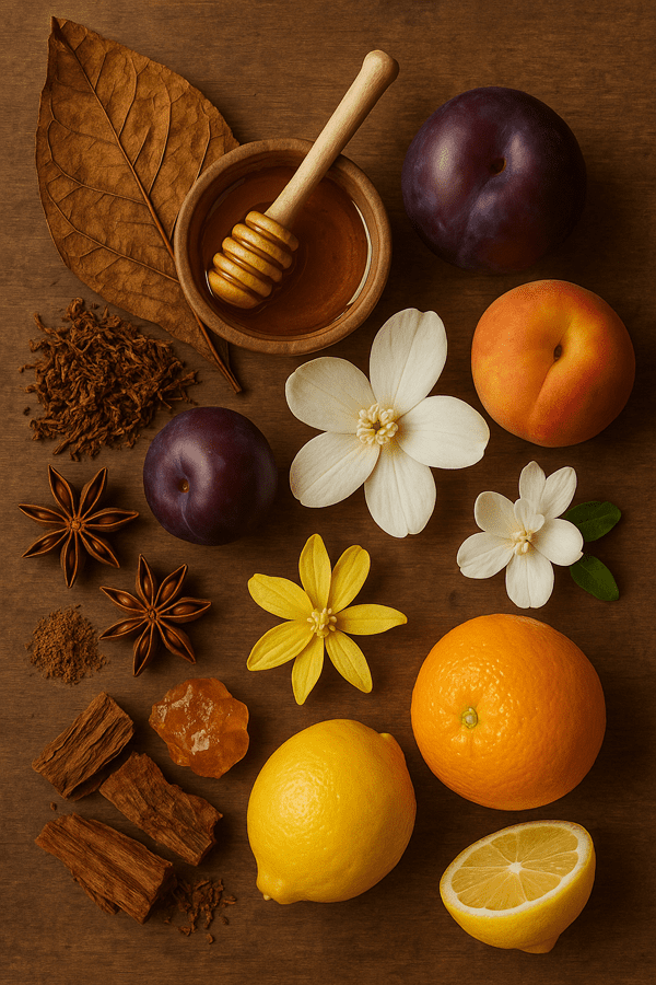 • Νότες κορυφής         ταμπάκο, φύλλο ταμπάκο, μέλι, Καπνός, δαμάσκηνο