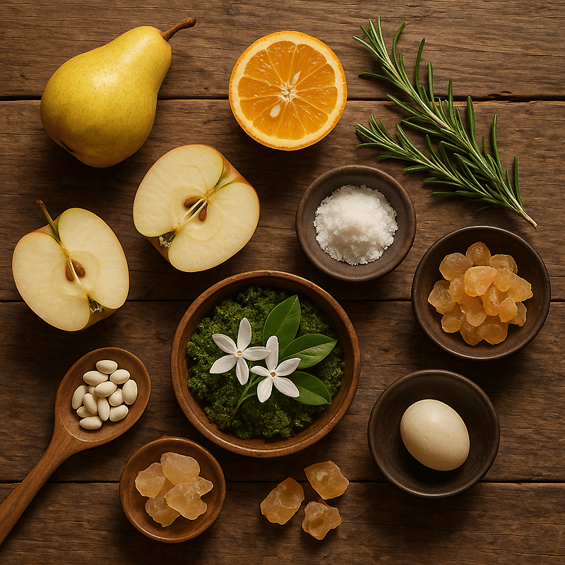 Ένα φωτεινό αλλά αινιγματικό μείγμα, αυτό το άρωμα ανοίγει με την τραγανή γλυκύτητα του αχλαδιού και την αέρινη κομψότητα του μόσχου. Καθώς το άρωμα ξεδιπλώνεται, η βελούδινη απαλότητα του Iso-E-Super ενισχύει την αιθέρια ποιότητά του, ενώ ένα ενδιαφέρον βάθος αναδύεται κάτω από τις φωτεινές νότες εσπεριδοειδών. Το Amyl Salicylate εισάγει μια μοναδική πράσινη, γλυκιά και διακριτικά φυτική διάσταση.