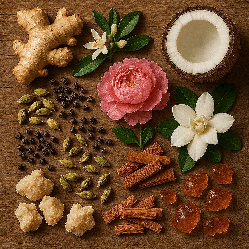 - Νότες Βάσης σανδαλόξυλο, μόσχος και κεχριμπάρι