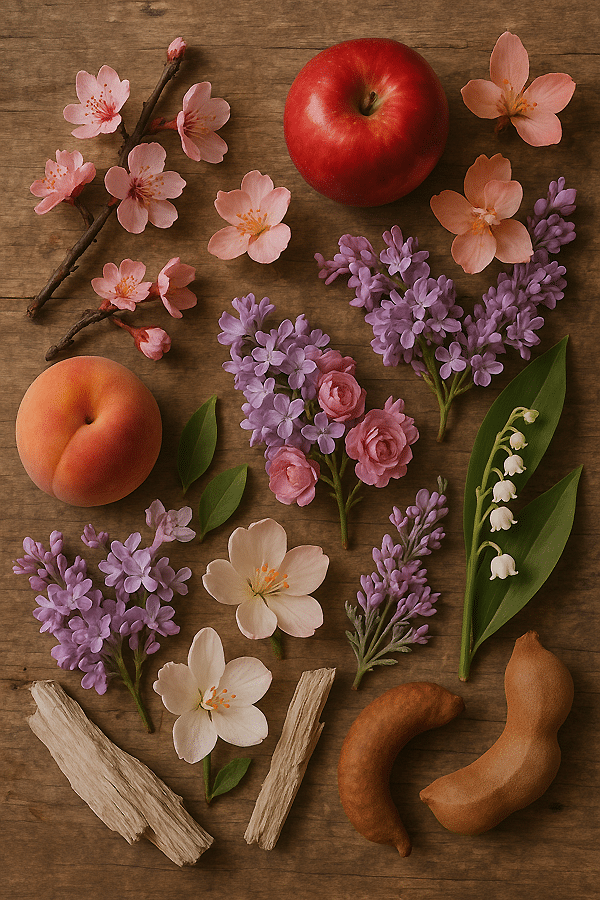 - Νότες Βάσης μόσχος, tamarin και λευκά ξύλα