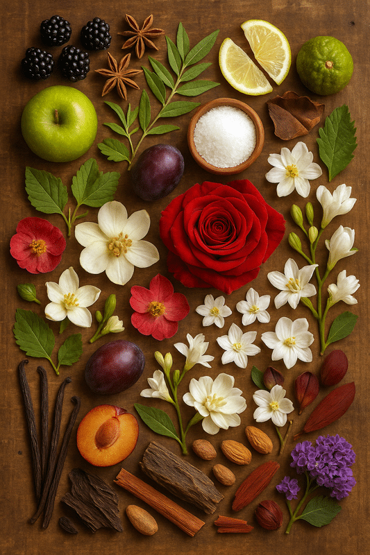 Στην καρδιά του, το άρωμα γεμίζει με άνθη: μανόλια, γιασεμί, τριαντάφυλλο, γαρδένια και τουμπερόζα πλέκονται με δαμάσκηνο και μια λεπτή γλυκύτητα, θυμίζοντας ώριμους καρπούς που κρύβονται μέσα σε ανθισμένο κήπο. Παρόλο που η ζάχαρη αναφέρεται στις νότες, δεν κυριαρχεί με έναν βαρύ, σιροπιαστό τρόπο· αντίθετα, η γλυκύτητα του αρώματος προέρχεται από τα ίδια τα φρούτα, κάνοντάς το πιο φυσικό και ισορροπημένο.