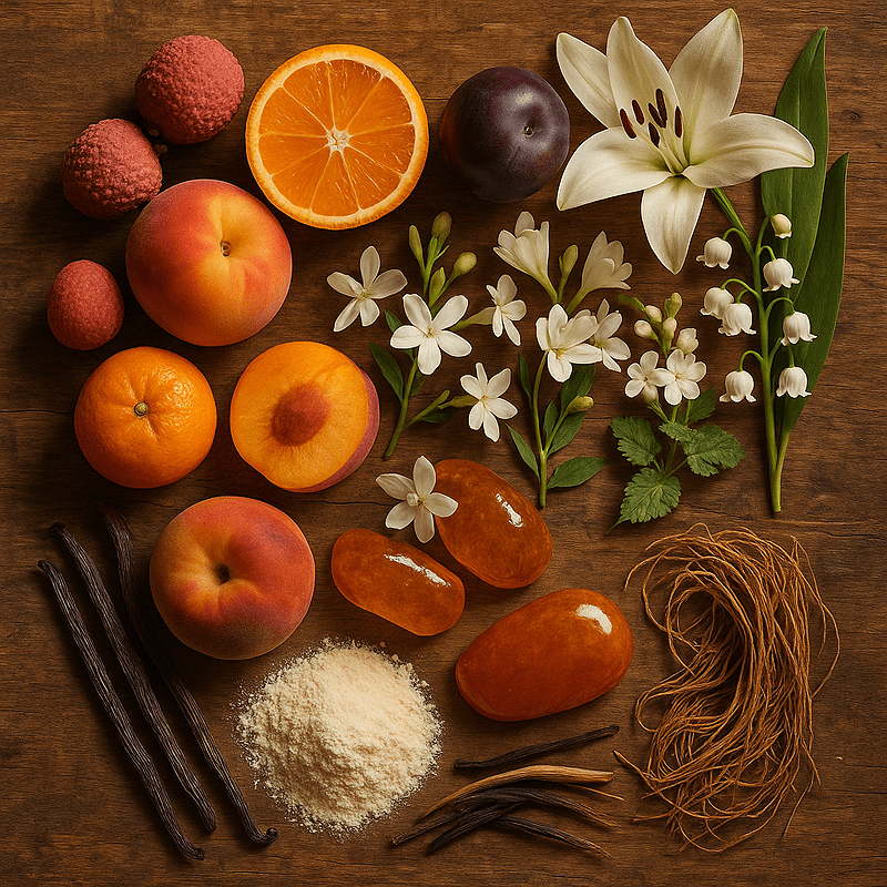 - Κορυφαίες νότες λίτσι, μάνταριν οράνζ, ροδάκινο και περγαμόντο
