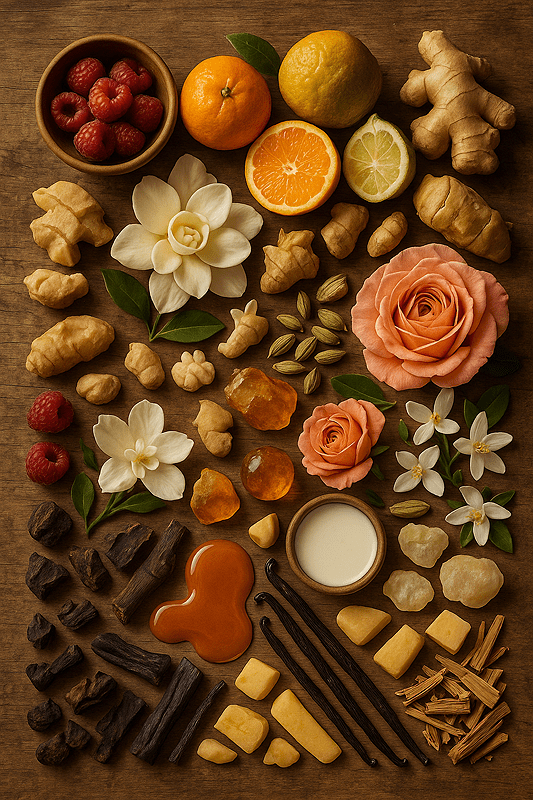 - Νότες Βάσης κάρδαμο, γάλα, σανταλόξυλο, κεχριμπάρι, βενζόη, καραμέλα, κουμαρίνη, γλυκόριζα και βανίλια.